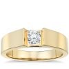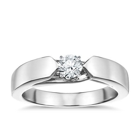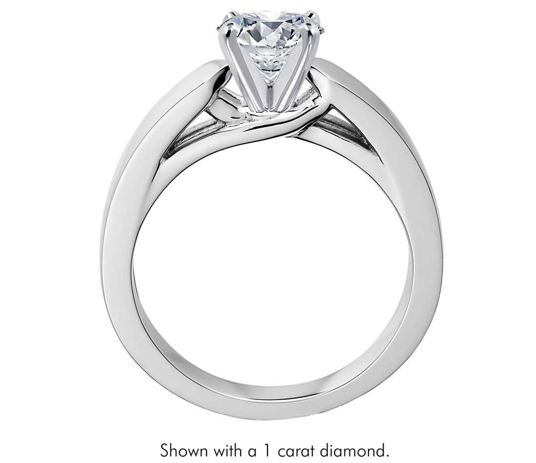 Moderna y elegante, esta montura de oro de 18 quilates para solitario tiene un perfil plano tipo pérgola de catedral que realza el diamante central de su elección